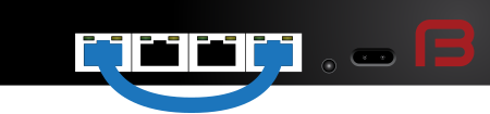 Conversely, multiple interfaces can be implemented on a single physical port (or port group) via support for IEEE 802.1Q VLANs, ideal for using the FB2900 with VLAN-capable network switches. In this case, a single physical connection can be made between a VLAN-capable switch and the FB2900, and with the switch configured appropriately, this physical connection will carry traffic to/from multiple VLANs, and the FB2900 can do Layer 3 processing (routing/firewalling etc.) between nodes on two or more VLANs.